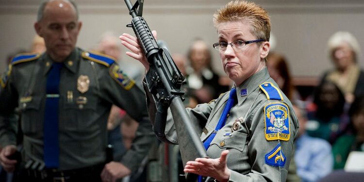 Photo: In this Jan. 28, 2013, file photo, firearms training unit Detective Barbara J. Mattson, of the Connecticut State Police, holds up a Bushmaster AR-15 rifle, the same make and model of gun used by Adam Lanza in the Sandy Hook School shooting. (AP Photo/Jessica Hill, File)
